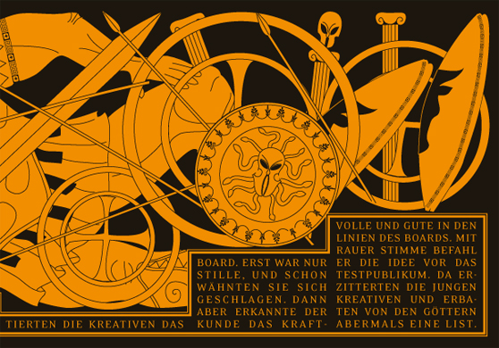 Wir nehmen die bekannteste Sage des Abendlandes und schreiben sie für die Kreativen um: Die Odyssee der Guten Idee. Damit Charaktere und Formen-sprache glaubwürdig erscheinen, mussten wir ganze Büchereien plündern.